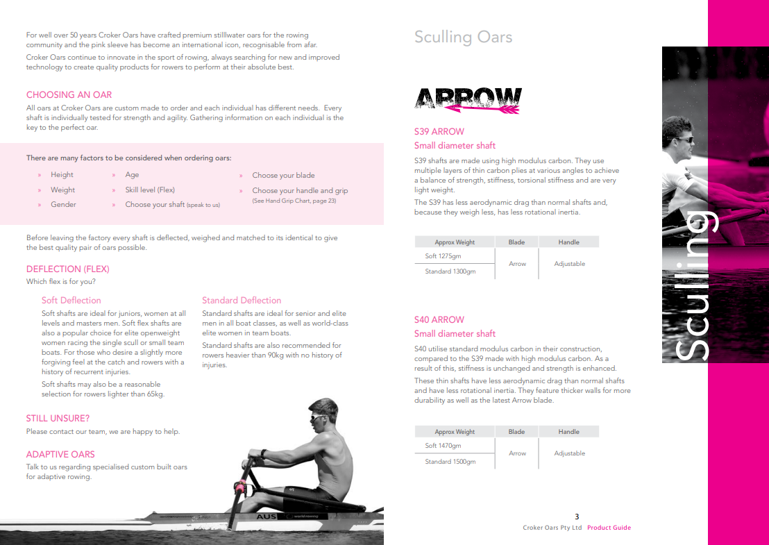 Cán mái chèo được Croker Oars chú trọng rất nhiều, đầu tư nhiều giờ vào việc thiết kế, phát triển và thử nghiệm sản phẩm của mình và tin rằng dòng mái chèo chèo của chúng tôi mang đến cho mọi người chèo thuyền cơ hội kết hợp trình độ kỹ năng của họ với cảm giác mong muốn trên mặt nước.