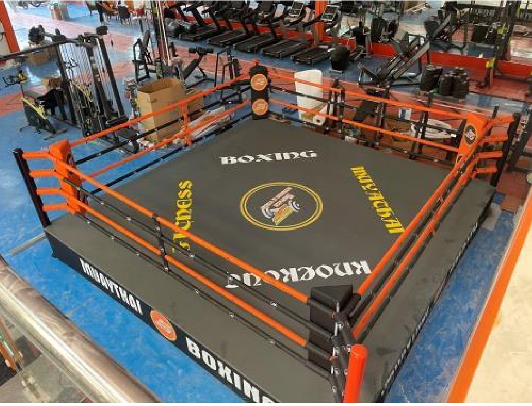 - Sàn và đệm góc: Sàn được thiết kế chắc chắn an toàn không lồi lõm, phù hợp với 4 cột góc, các cột góc đài được bọc lót tốt để không gây chấn thương cho các vận động viên. Bốn trụ góc đài cao 2,442mm, khung gia cố chịu lực. Hệ thống khung sàn, các cột góc bằng hệ thống khung sắt được sơn tĩnh điện.