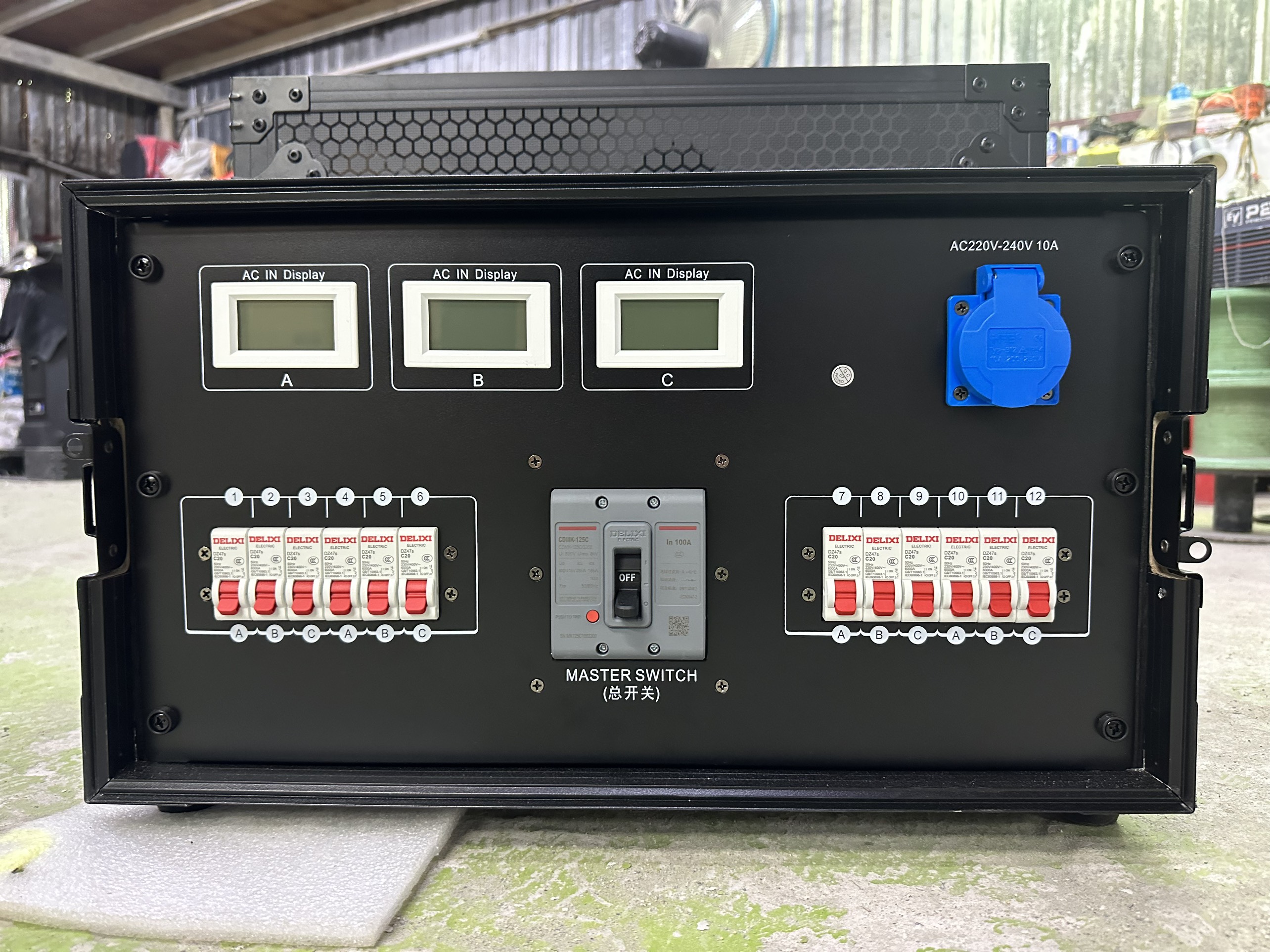 • Vỏ tủ là tủ gỗ 4U và đầu ra là 11 phích cắm công nghiệp chống nước 16A, mỗi kênh 3,5 KW, ổ cắm 2 chân 10A/1 chân, đầu vào công nghiệp 5 lõi 32A.